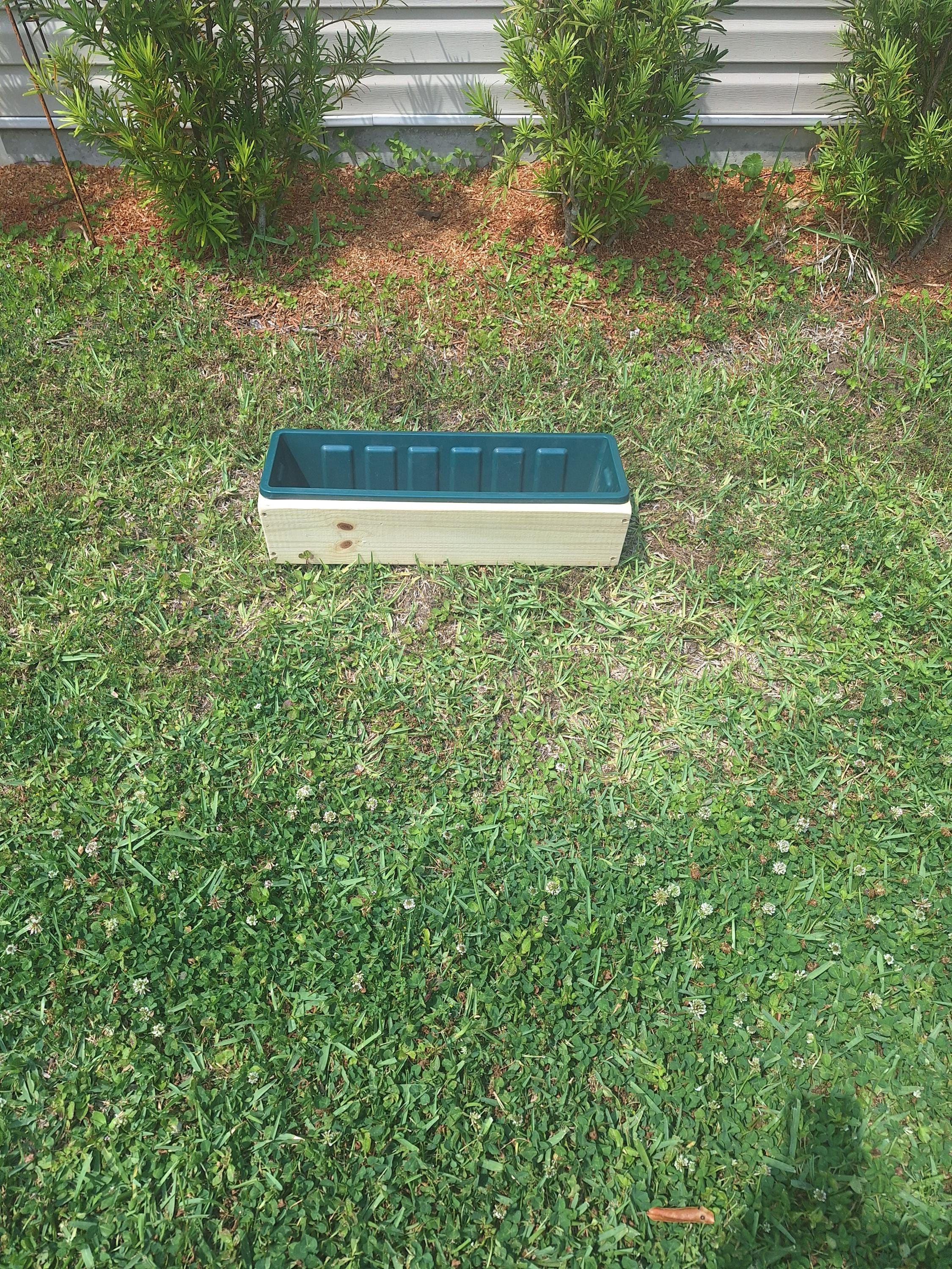 These window boxes are made from treated lumber and range in length from 18 inches to 30 inches and include a heavy one-piece poly pro liner by Novelty Mfg. and are made in the USA. The liners are UV and frost resistant and have punch holes for drainage. The wood planters are 9 inches across the top and 5 1/2 inches high. Custom sizes are available without a liner. A great feature of this is the ease in planting, simply remove the liner, plant your flowers, herbs or veggies and return to the window box! Free Shipping!